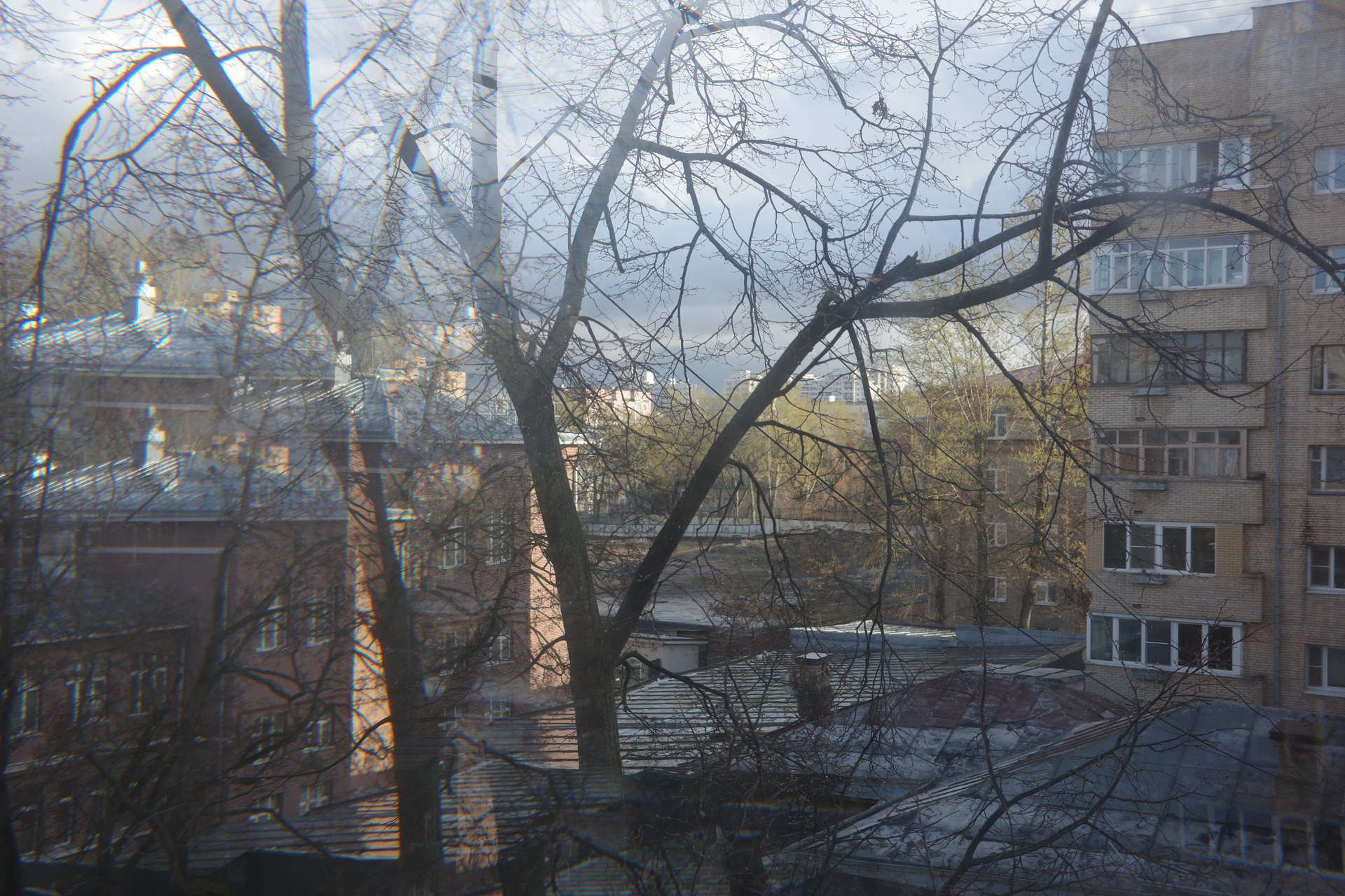 Время от времени капает мелкий дождик, оставляя следы на асфальте.